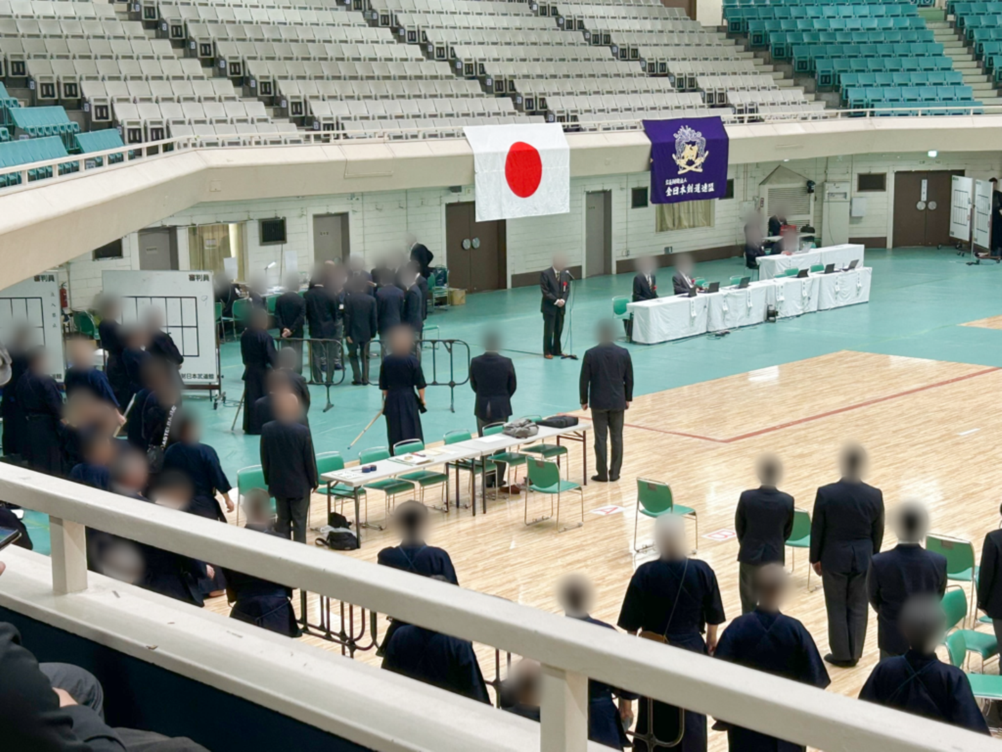 床を踏み込む足音や、胴に竹刀があたる破裂音に混じって、剣士の魂を込めた叫びが永遠と鳴り響く、「異様」な緊迫感に包まれた空間でした。
