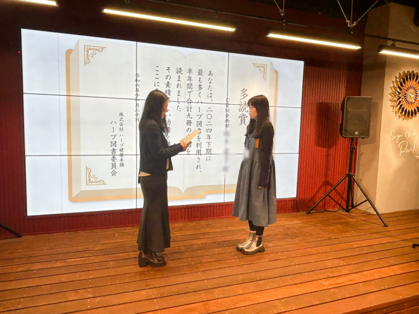 多読賞とは、半年間で最も多くハーブ図書を利用して本を読んだメンバーを表彰し、特典を贈呈する制度です。2024年下期は、半年間で9冊の本を読んだメンバーに、図書カード2000円分が贈呈されました。
