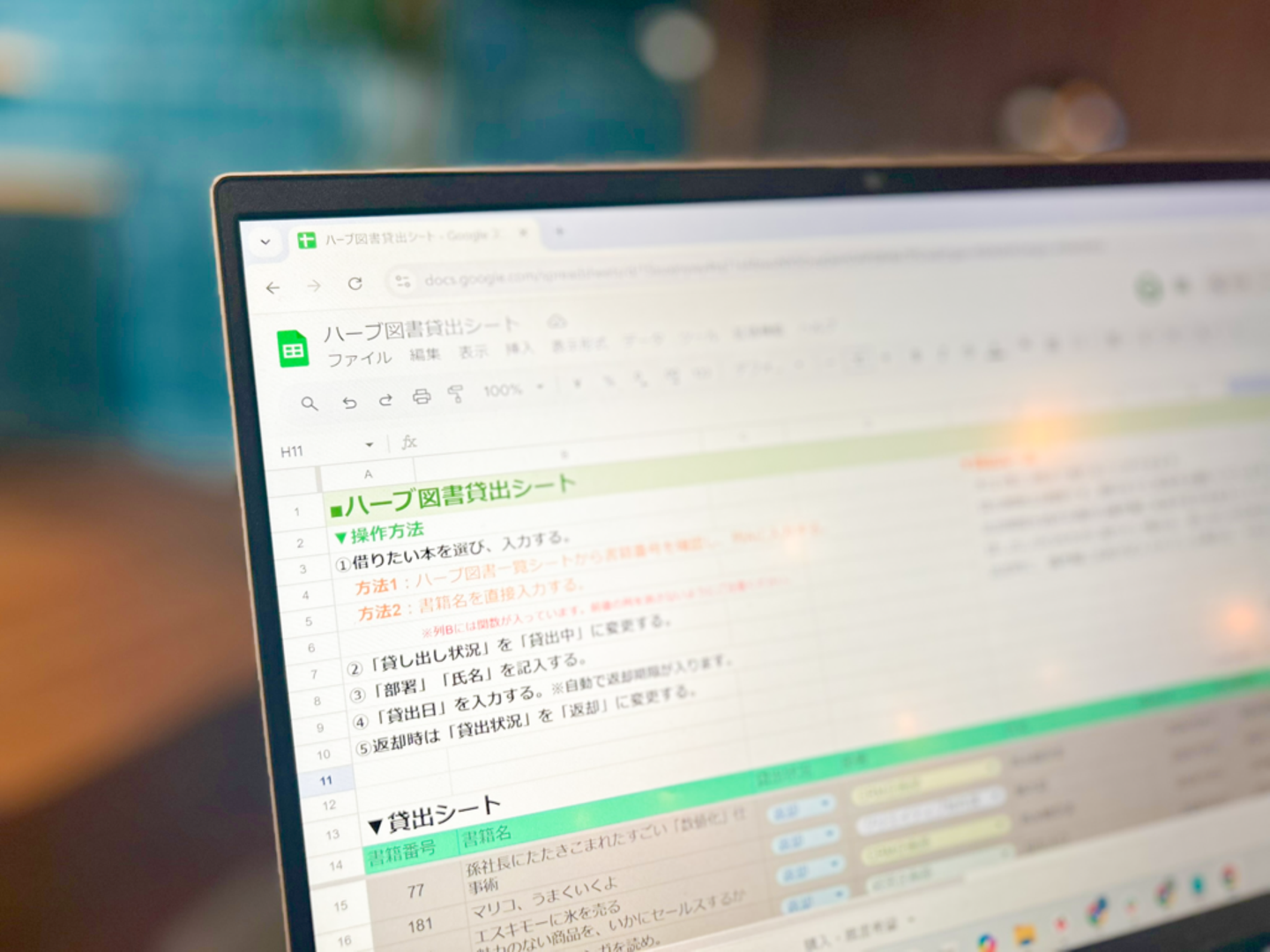 借りたい本が見つかったら、スプレッドシートでまとめられた運用ルールに則り、オンラインで登録すればOK。貸し出し方法や運用ルールはWeb化され、いつでも確認できるので、初めてハーブ図書を利用するメンバーが安心して利用できます。