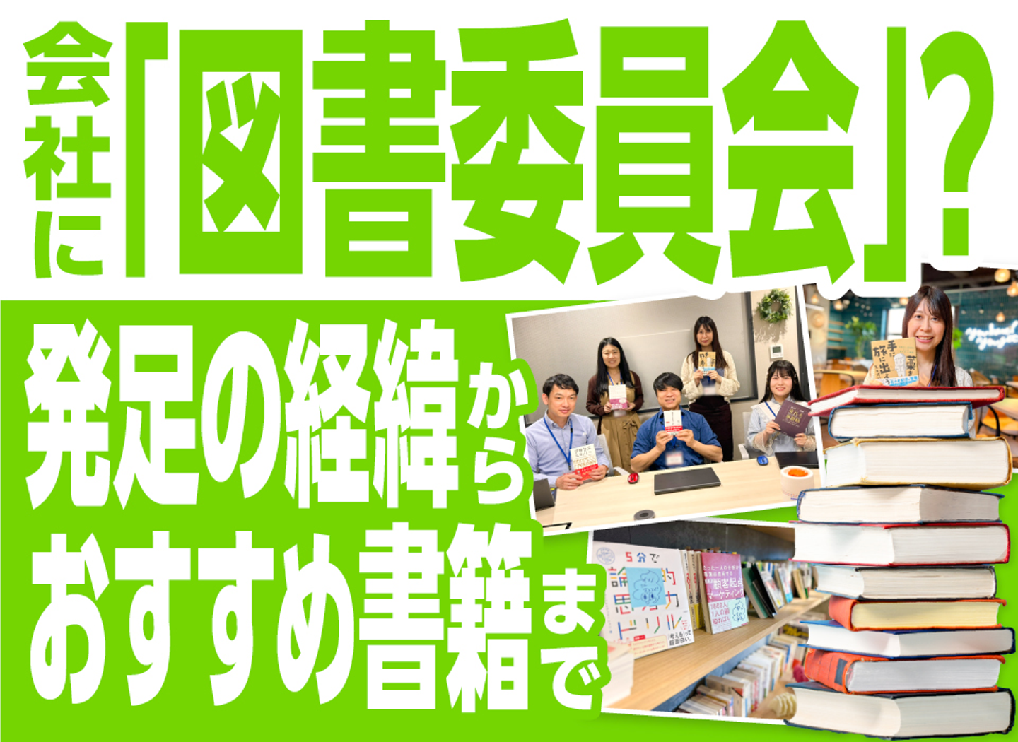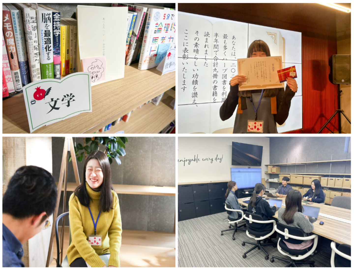私自身、図書委員会に入るまでは、あまり本を読んでいませんでした。いまは、本の内容が仕事に応用できたり、いつもと違う発想で取り組めたりと、読書を通じて自分のはたらき方に変化を感じています。部署内で仕事ぶりを褒められたときは、とても嬉しかったです。
