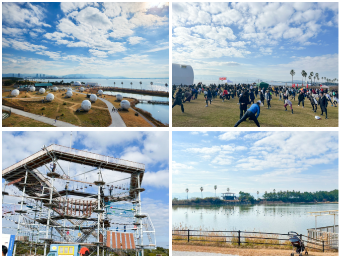 全国で5番目に設置された国営公園として、福岡市民だけでなく遠方からもたくさんの方が訪れる海の中道海浜公園。キャンプ場完備で宿泊ができるほか、公園内をのんびり散策できるサイクリングロードや、高さ16.8mの展望台&巨大アスレチックタワーがあり、1日中楽しめます。