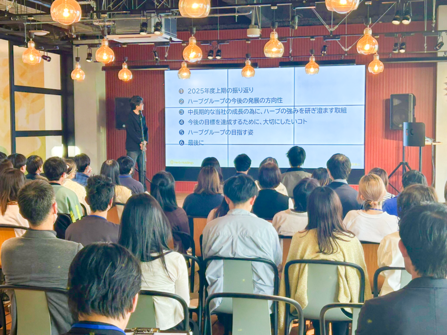 各事業部のリーダーによる発表では、ハーブ健康本舗の事業を国内直販事業・外部EC事業・卸事業・海外事業の4つに分類し、それぞれの現況と今後の方針が発表されました。