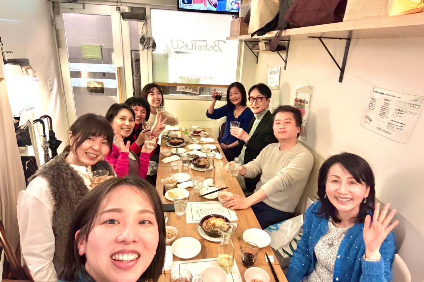 昨年末には、メンバー揃って忘年会を行いました。また、代表の和が月に1回岡山へ足を運ぶ際には毎回岡山のメンバーとのランチ会を行っています。東京のメンバーとは、和とメンバーのそれぞれが1対1で食事に行き、近況報告や相談を行う様子が見られます。メンバー同士でも、声をかけあってランチへ行くことは日常茶飯事です。