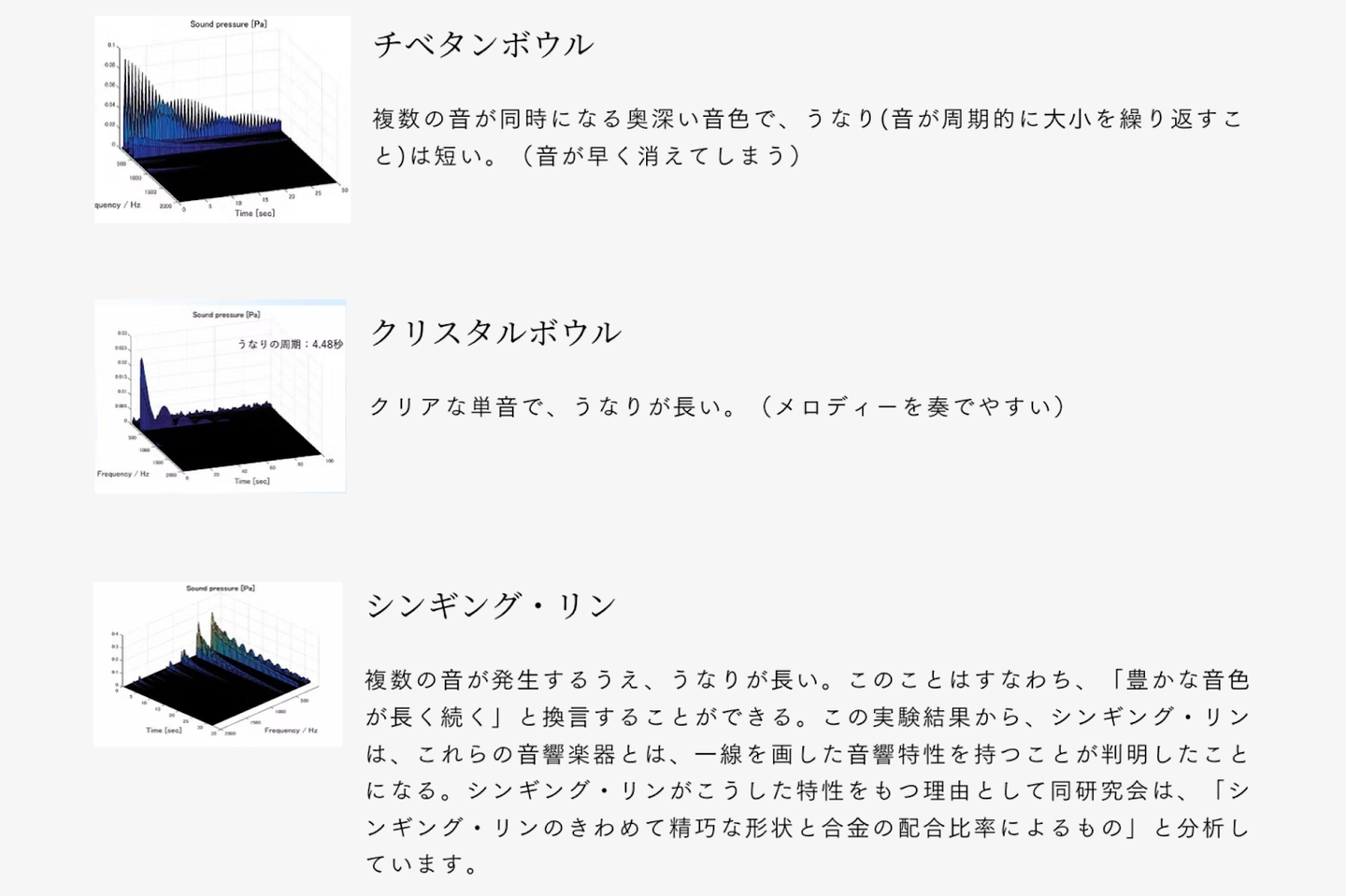 池田: それは「全倍音」を奏でられる点に尽きます。例えば音叉やクリスタルボウルは、特定の周波数の音を出すものです。もちろんそれらも素晴らしいのですが、シンギング・リンが一つで奏でる音には、低周波から高周波まで、身体に必要な全ての周波数が含まれている。いわば、それら全ての楽器を包括しているようなものです。全倍音だからこそ、その時にその人が必要としている周波数が、身体に自然と共鳴していくのです。