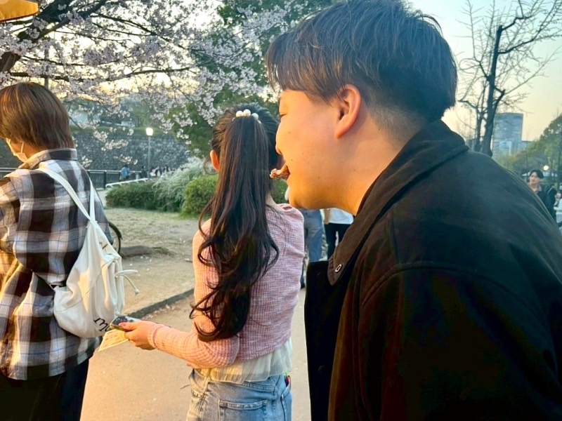 大阪城公園にて大阪城を見ながら桜も見れちゃう素敵な場所で、最高のメンバー、美味しいお酒、美味しいご飯はさいっこーですっ!!🏯