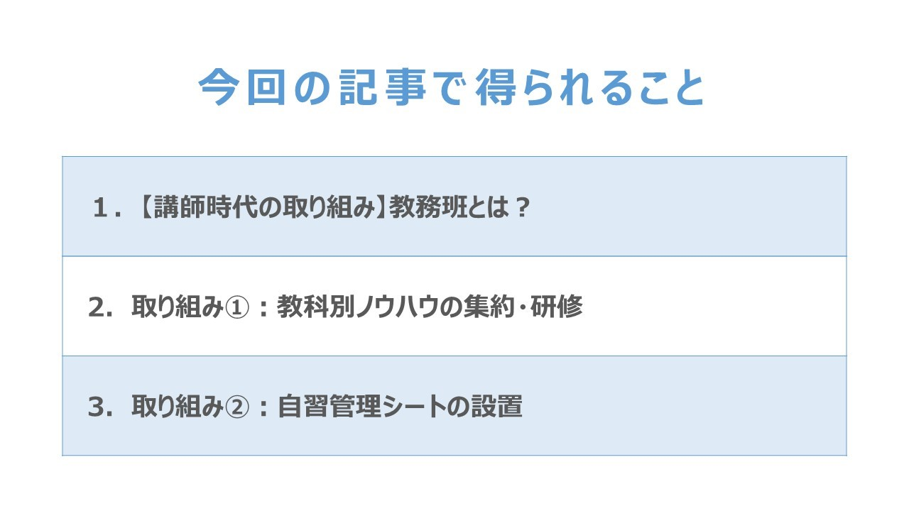 そして、今回は『教室運営』についてより理解を深めていただけるよう、私が講師時代に行った『教室運営』の具体的な取り組み・教務班についてお伝えしていきます!