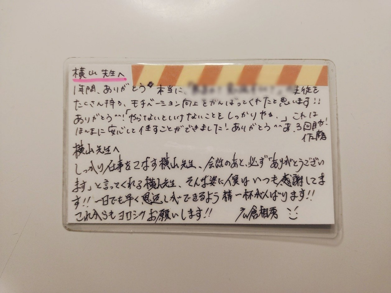 私がよく覚えているのは、イベントの中で教室長からいただいたメッセージカードです!