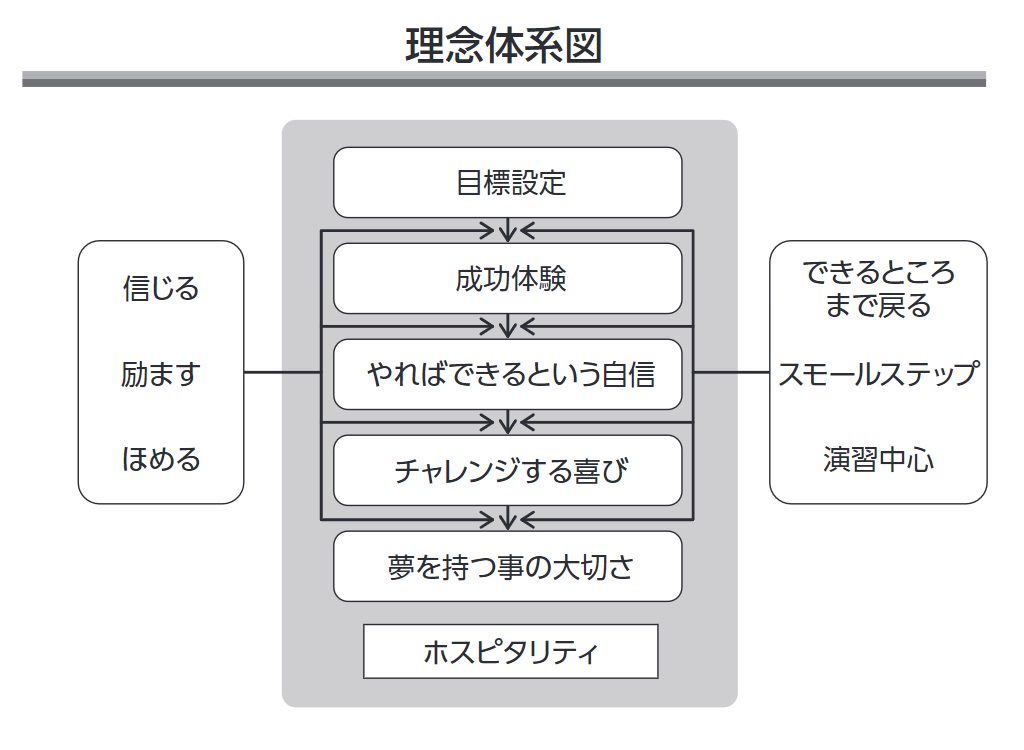 また、この生徒の指導を通して、東京個別指導学院の理念体系図にある「信じる・励ます・ほめる」がいかに大切かということに気づくことができました!