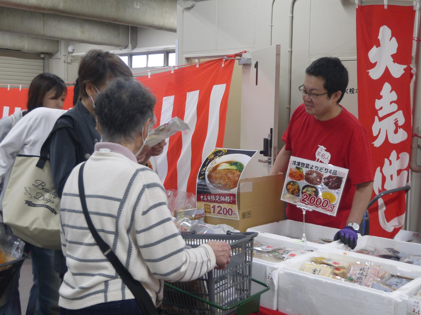 まだまだ一般的には知られざる企業である中華・高橋。清澄白河エリアの営業センターでは日々トラックが行き交い、惣菜製造拠点であるC’sKitchenではエビチリや麻婆豆腐の香りが漂います。そんな環境の中、中華・高橋では近隣の方々の日頃のご協力への感謝の気持ちも込め、またどんな人が働いていて、どんなことをしている会社なのかを体感してもらうために定期的に特売セール「中高市」を開催しています。業務用の食材やこだわりの冷凍総菜がお得に購入できることもあり、今では朝早くから行列ができ、かごいっぱいに商品を持ち帰る人も少なくない人気イベントとなりました。