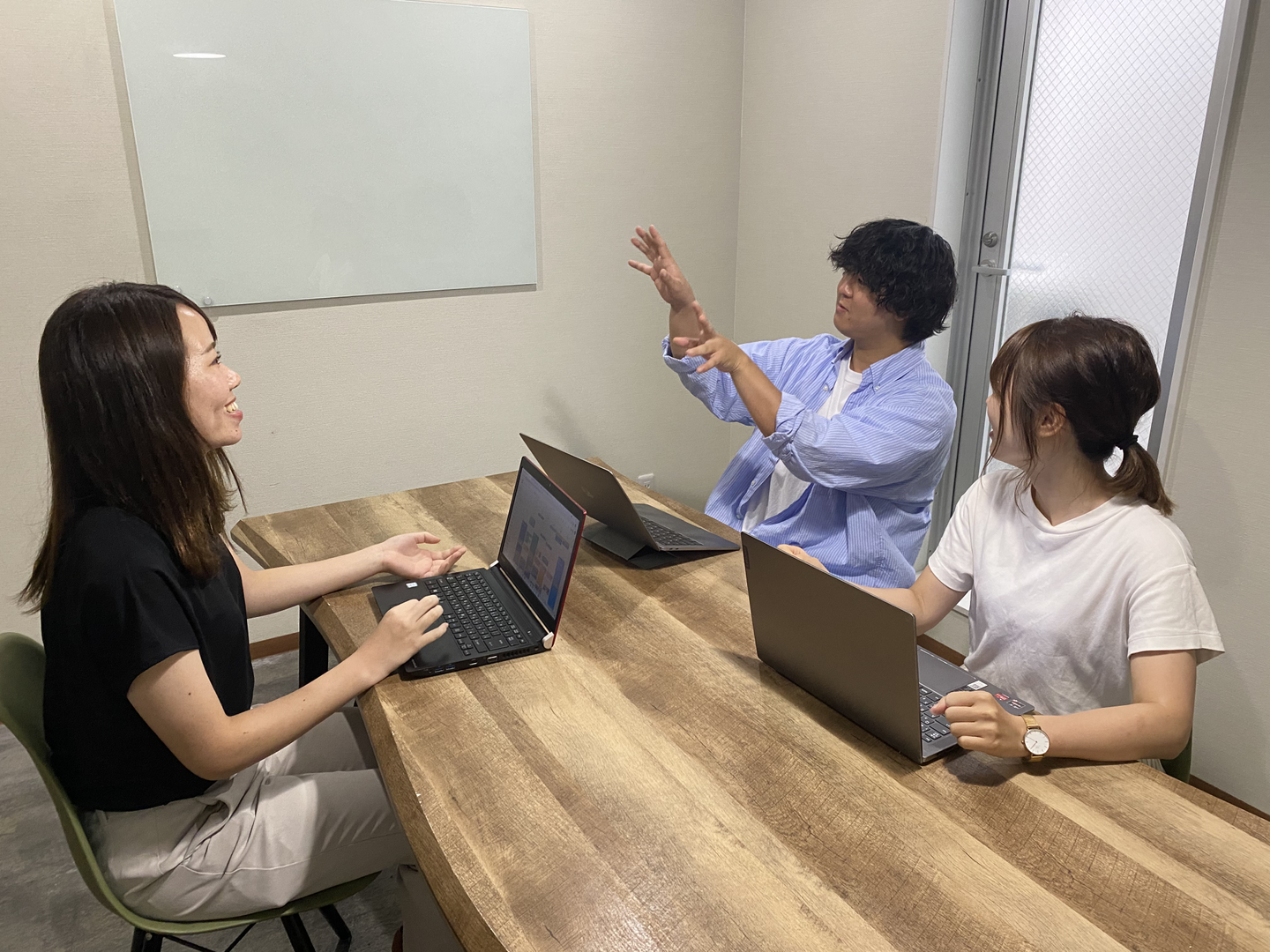 佐藤:私が本格的に就活を始めたのは学部3年の2月。夏はサマーインターンにたくさんエントリーをしていました。11月にSpeeeの本選考を受けて、11月末に内定承諾しました。こんなに早く終わったのは、前提として1,2年から就活イベントに参加したりしてて、めちゃくちゃ意識していたからっていうのはある。 まあ私もそうなんやけど、なんで二人もこんな早く就活始めたん?