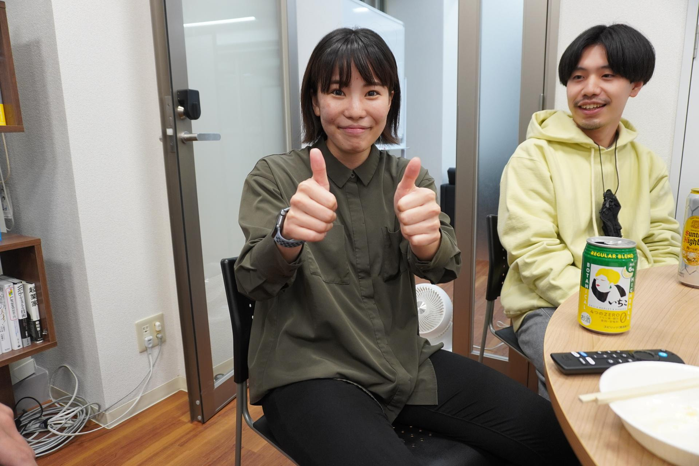 ※飲み会でテンションが高まり両手グーサインを披露するMさん