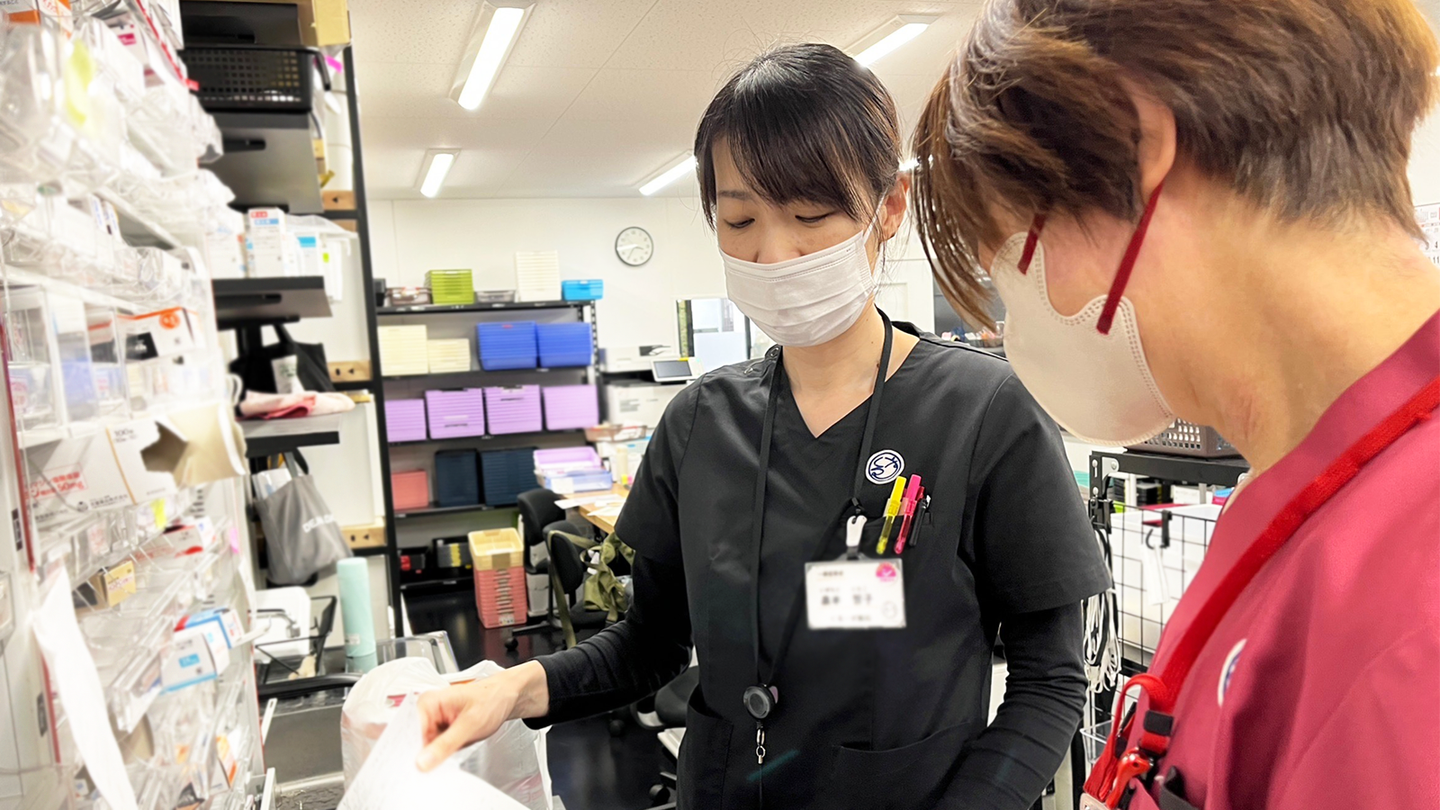 現在は南住吉店のクラーク主任として、薬剤師の店舗長と協力しながら店舗運営を行なっております。