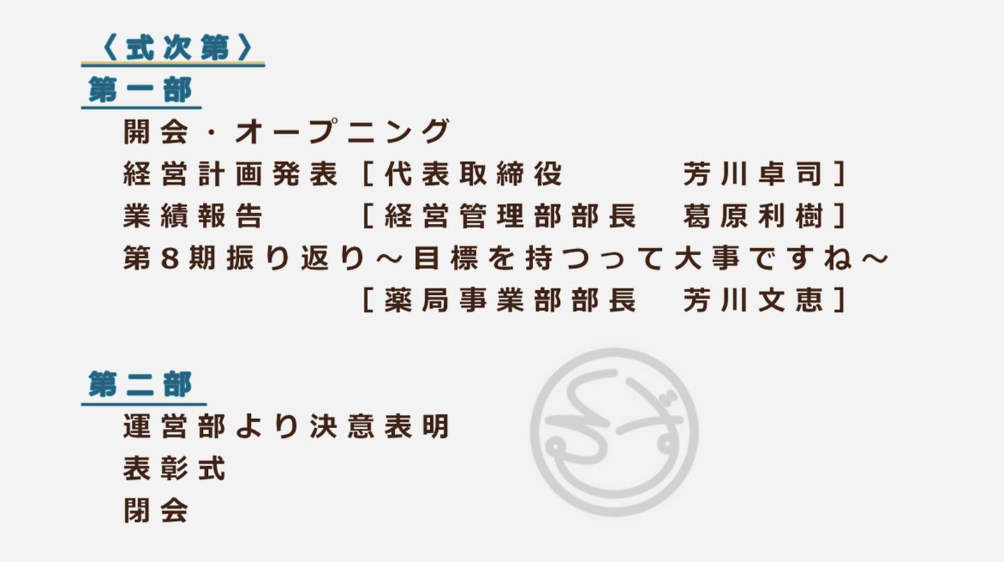 今回は芳川社長からの経営計画発表と、表彰式を抜粋してお伝えしていきます。