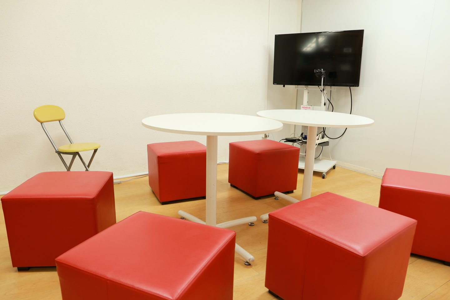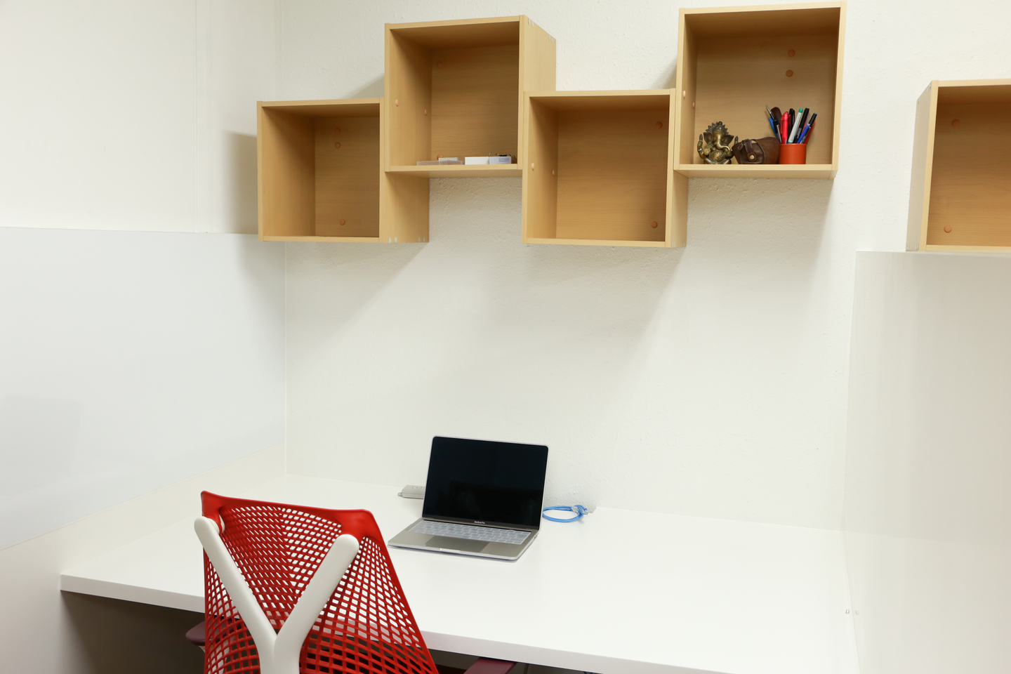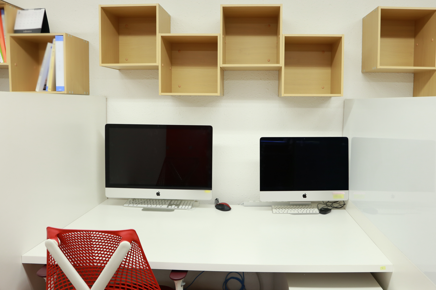 各種ソフトの入ったMacが配置してあったり、机と椅子のみのスペースだけだったりと、用途に合わせて使用できます。