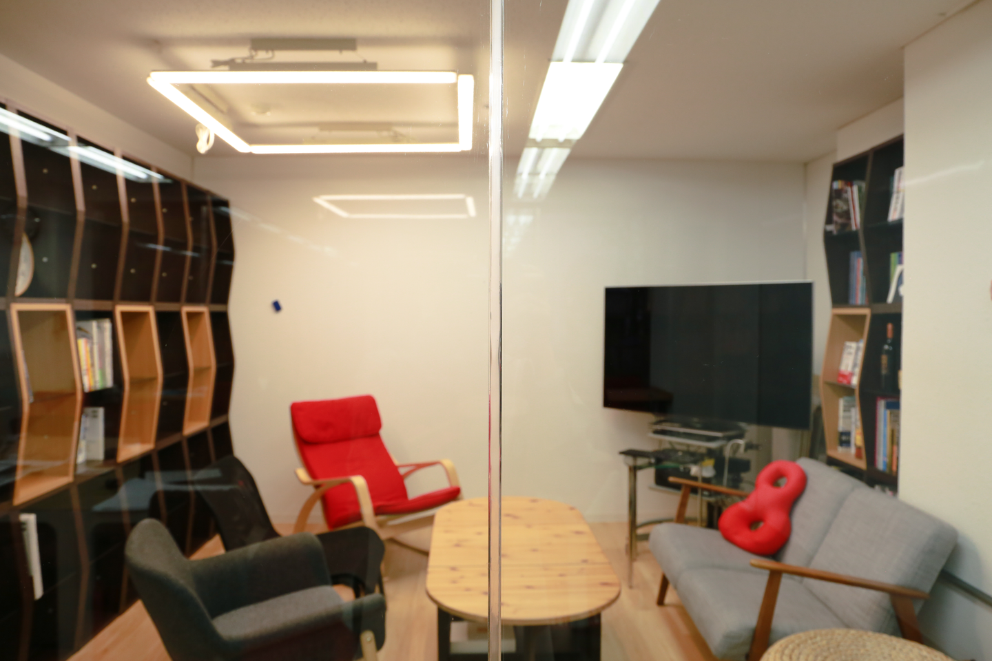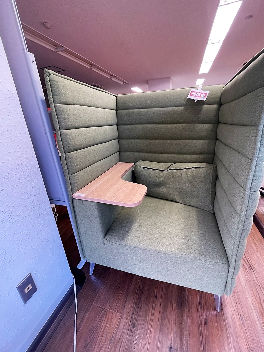 こちらはミーティングブースとしても使用しているソファですが、なかなかぴったりなサイズ感で、集中したいときにも、活用できます。