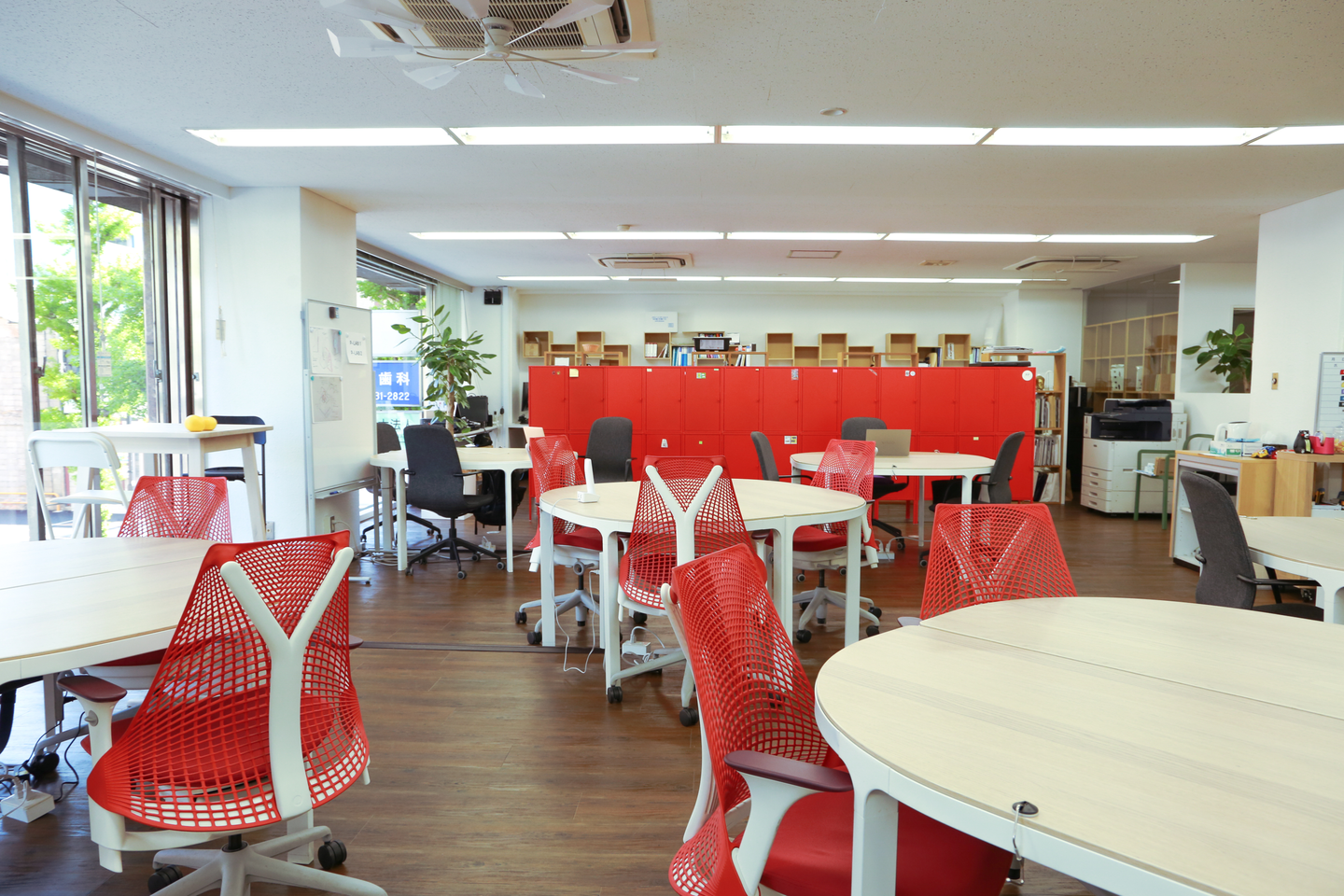 このように丸や四角のデスクが点在しており、好きなところに座って作業します。