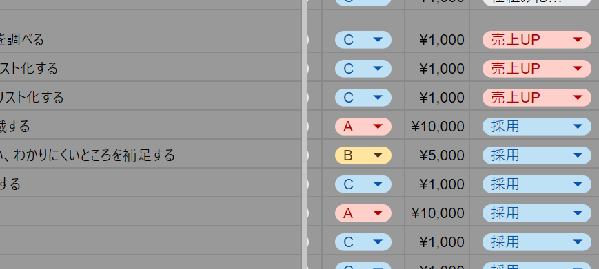 ▲このように、それぞれのピッパにランクをつけて金額換算しています。
