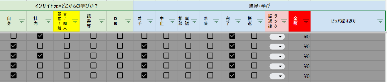 ▲インサイト元や、進捗状況、振り返りを記入します。
