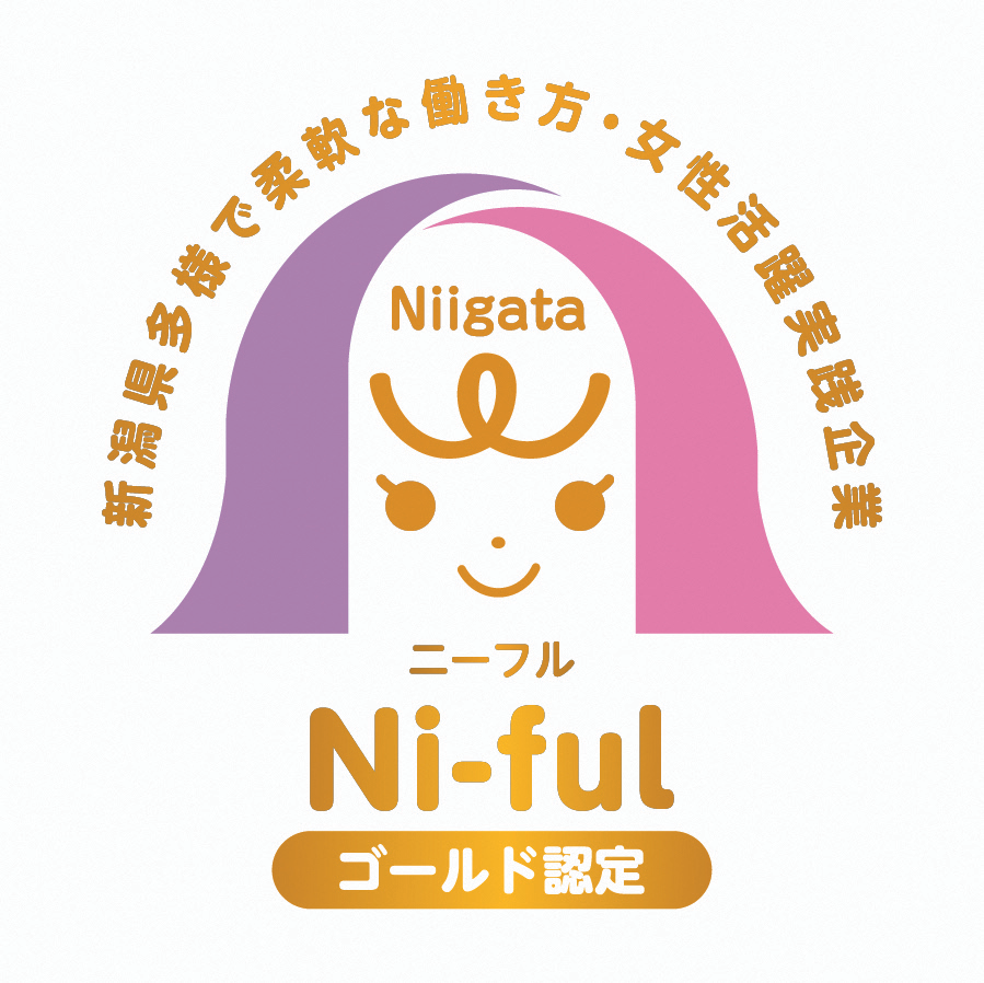 『新潟県多様で柔軟な働き方・女性活躍実践企業認定制度(Ni-ful(ニーフル))』が創設され、今年10月より認定が開始されました。そのNi-fulより、当社が認定企業として選ばれ、さらに上位ランクである「ゴールド」の認定をいただいたとのご連絡を受けました。