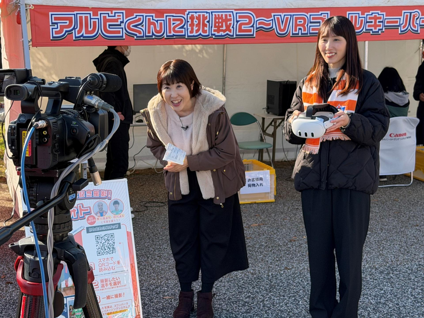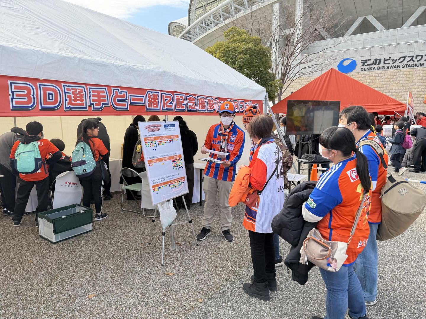 当日は晴天にも恵まれ、会場のデンカビッグスワンスタジアムは2万5000人を超える来場者で賑わっていました。当社が出展した「アルビくんに挑戦2~VRゴールキーパーチャレンジ!~」と「3D選手と一緒に記念撮影!~ARフォト~」のブースにも多くの方々が来訪され、当社のXR(VR・AR)技術を楽しみながら体験していただきました。