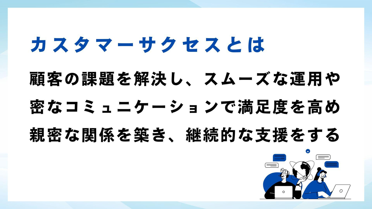 カスタマーサクセスは、単なる「カスタマーサポート(問い合わせ対応)」とは異なり、顧客が弊社のサービスを通じて最大限の価値を得られるように、自分で考えて継続的にサポートすることを目的としています!