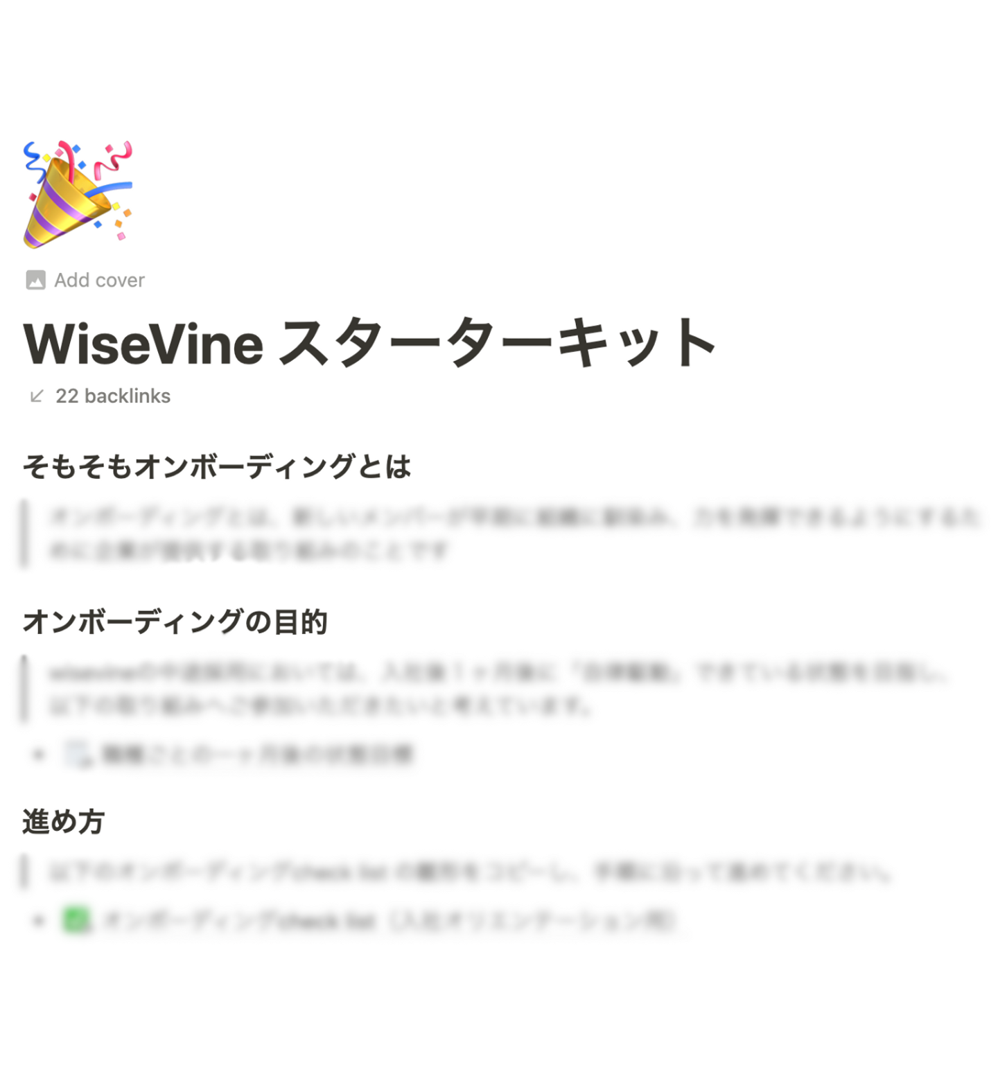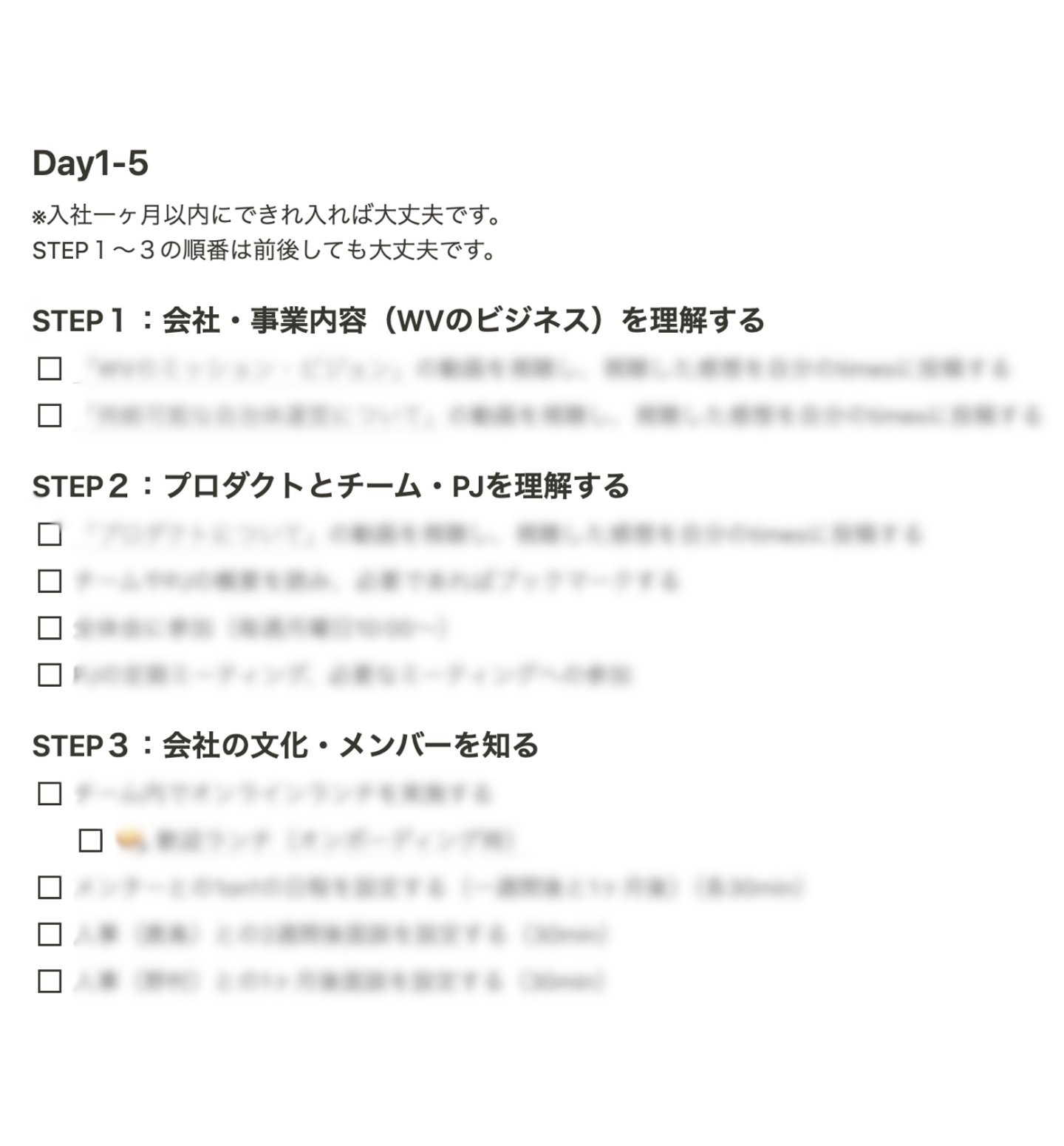 野村:この課題に対しては、“スターターキット”を作りましたね。いわゆるTO DOリストのようなもので、入社初日から1ヶ月くらいの期間で進めていくと、やり終わった時に「何かワクワクして、自分のやるべきことが明確にわかって、スタートダッシュが切れる状態」になれるようなものです。