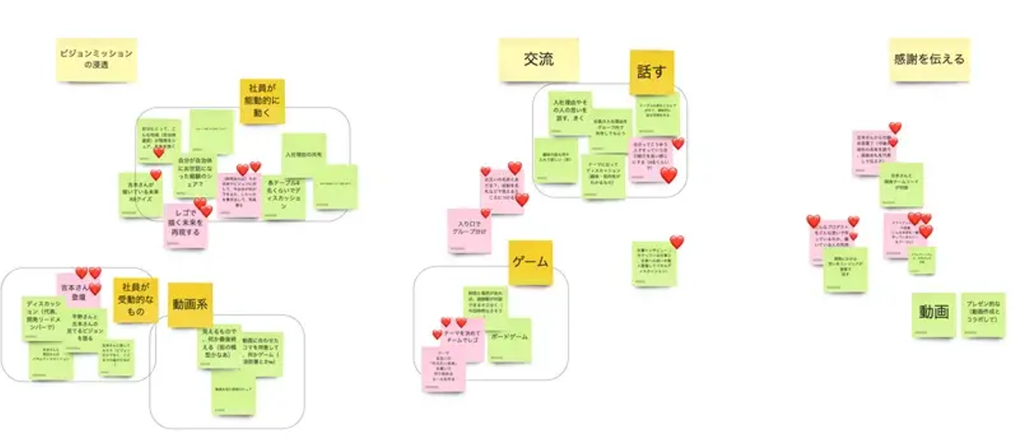 野村:カンファレンスのmiroには本当に多くの時間を費やしましたね。「何を目的に、何を伝えるべきか」など深く考え、1on1で得た組織の不足点を補うために、緻密に企画しました。