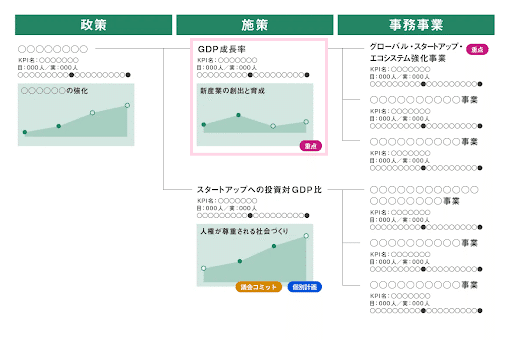 これにより、政策・施策・事業が一体的に管理され、上位のKGIに基づいて事業の統廃合や優先順位付けが可能となりました。