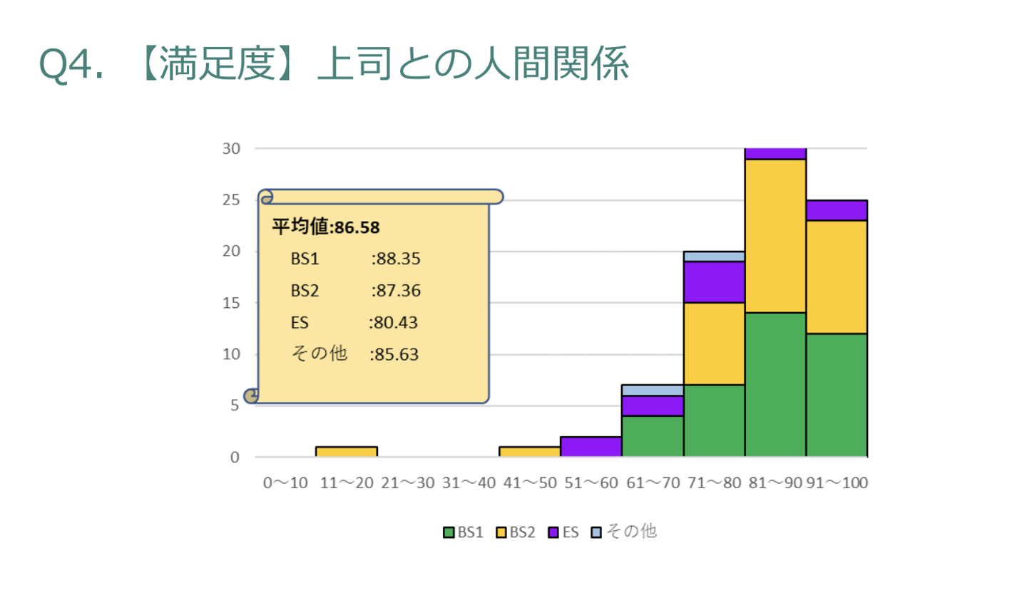 ▲去年の記事では「社員満足度」の調査結果を公開したので、今年は「上司との関係性における満足度調査」の結果を公開!平均値86.58という数値からも風通しの良さを立証しています(2024年6月調査)。