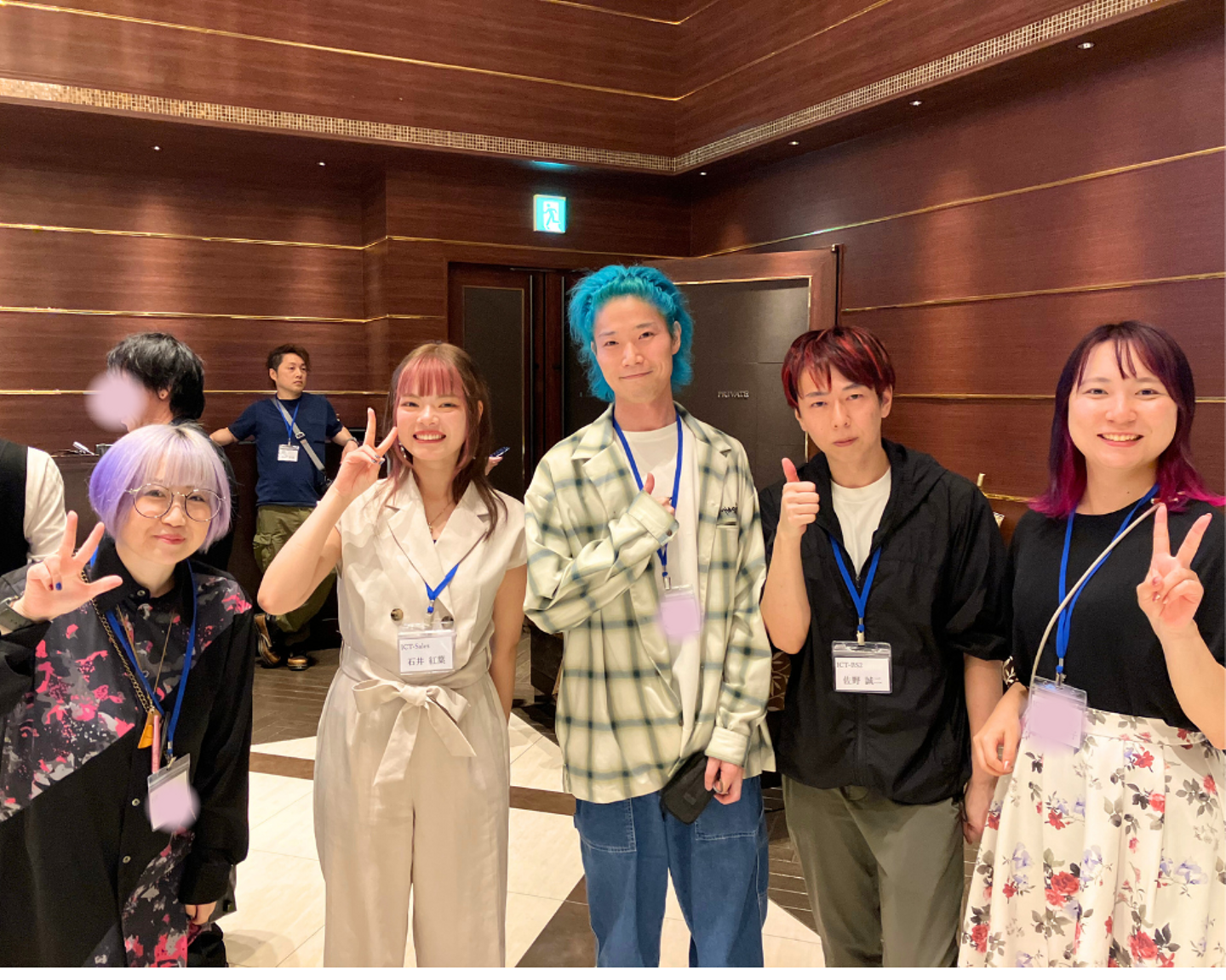 ▲今年も派手髪メンバー集結!左からHR(人事)、営業、エンジニア、エンジニア、エンジニアです。