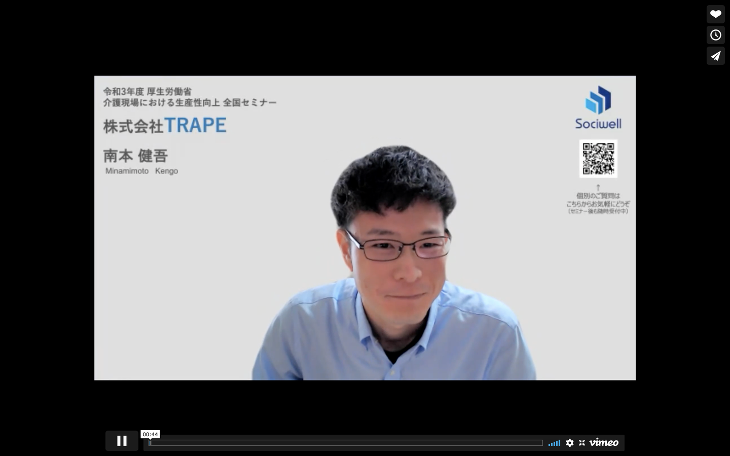 直接会ったことのない鎌田さんとの対話はやはり緊張し、TRAPEの印象を聞かれた際には、「介護保険分野の生産性向上のセミナーなど、最先端の企業と認識しています!」などと変な事を言っていた気がします(笑)