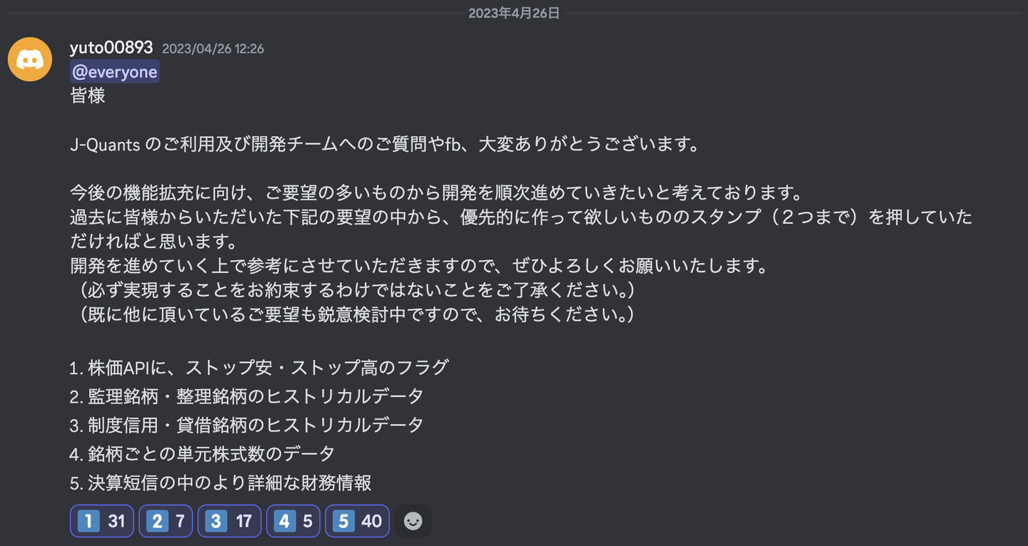 B to Bの取引が多かったJPXにとって、多数少額のサブスク決済をどのようにオペレーションするか/自動化するか、個人情報の取扱はどうするか、など構築する機能それぞれが新しい試みでした。また、ユーザー体験にも気を配りながら使いやすさを追求し、ベータ版を運用する中でユーザーとのコミュニティをDiscordで運営しながら要望を取り込むなど、改善活動の末リリースをしました。