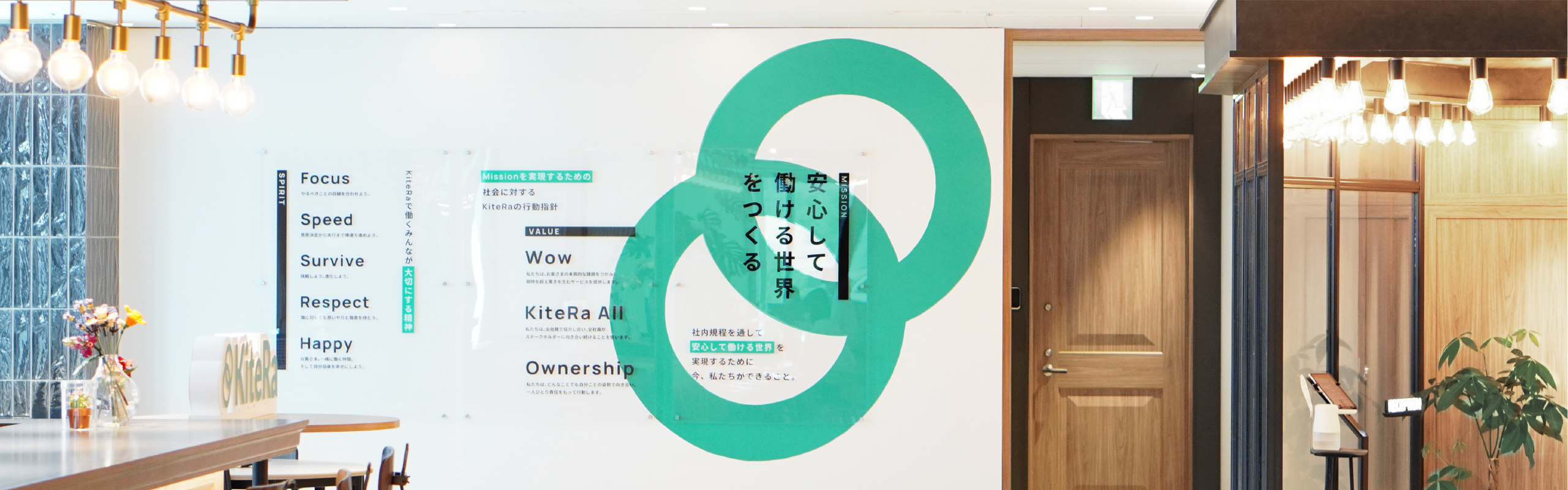 私たちは、事業会社や社会保険労務士事務所に向けた社内規程クラウドサービス『KiteRa(キテラ)』の開発 / 提供をしています。 社内規程は安心して働けるための相互尊重のルールであり、働く人々の生活をより豊かにするために欠かせないものです。 私たちが提供する『KiteRa』では、規程担当者や社労士の方が持つ課題を解消し、社会環境の変化に柔軟に対応できる基盤づくりをサポートすることで、本質的な企業価値向上へ導きます。