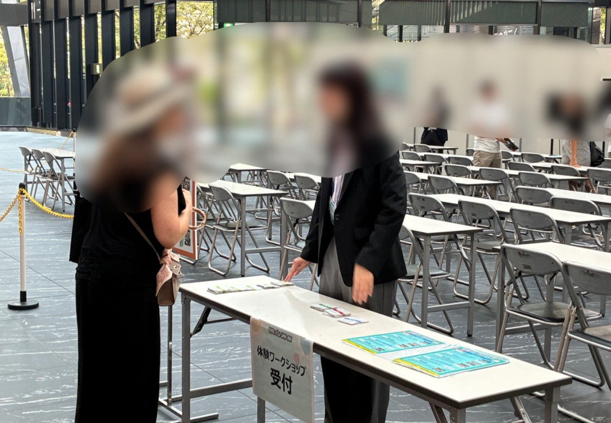 受付では、来場されたお客様にワークショップの内容をご説明し、興味を持ってくださった方に整理券をお渡ししました。