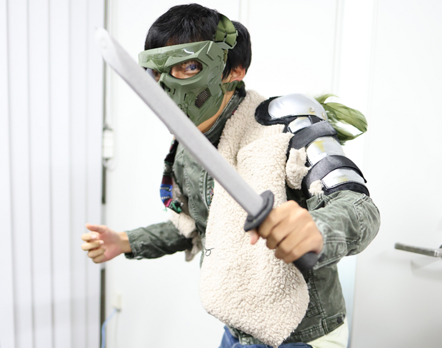 「世紀末やサバイバルゲームが好きなので、蛮族っぽい格好してます!」
