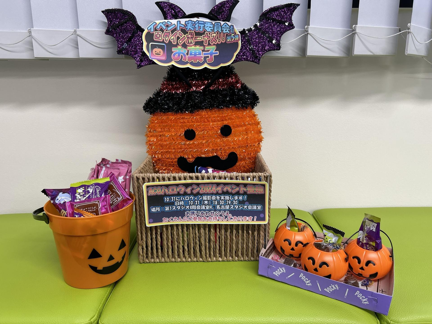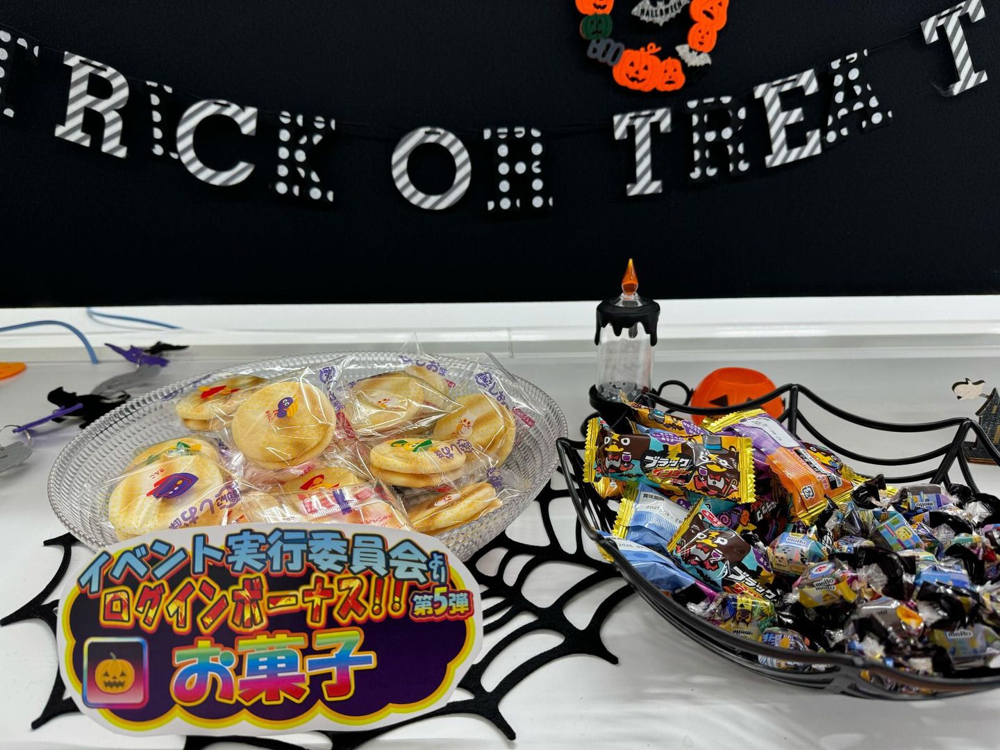 皆様ご存じの通り、10月31日と言えば・・・ハロウィン🎃ということで、1週間前からログインボーナスと言う名のお菓子の配布と、かわいらしい飾りつけが社内で見られるようになりました!!