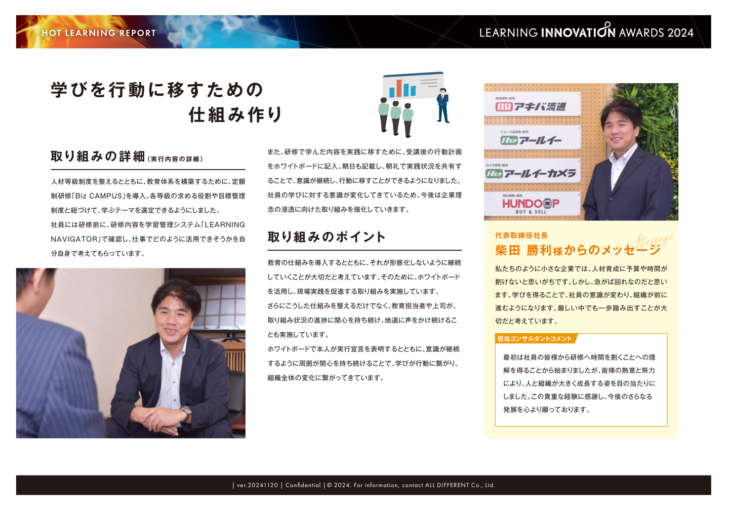弊社では学びの取り組みを今後も発展させ、従業員の成長にフォーカスした組織体制を作り上げていきます。