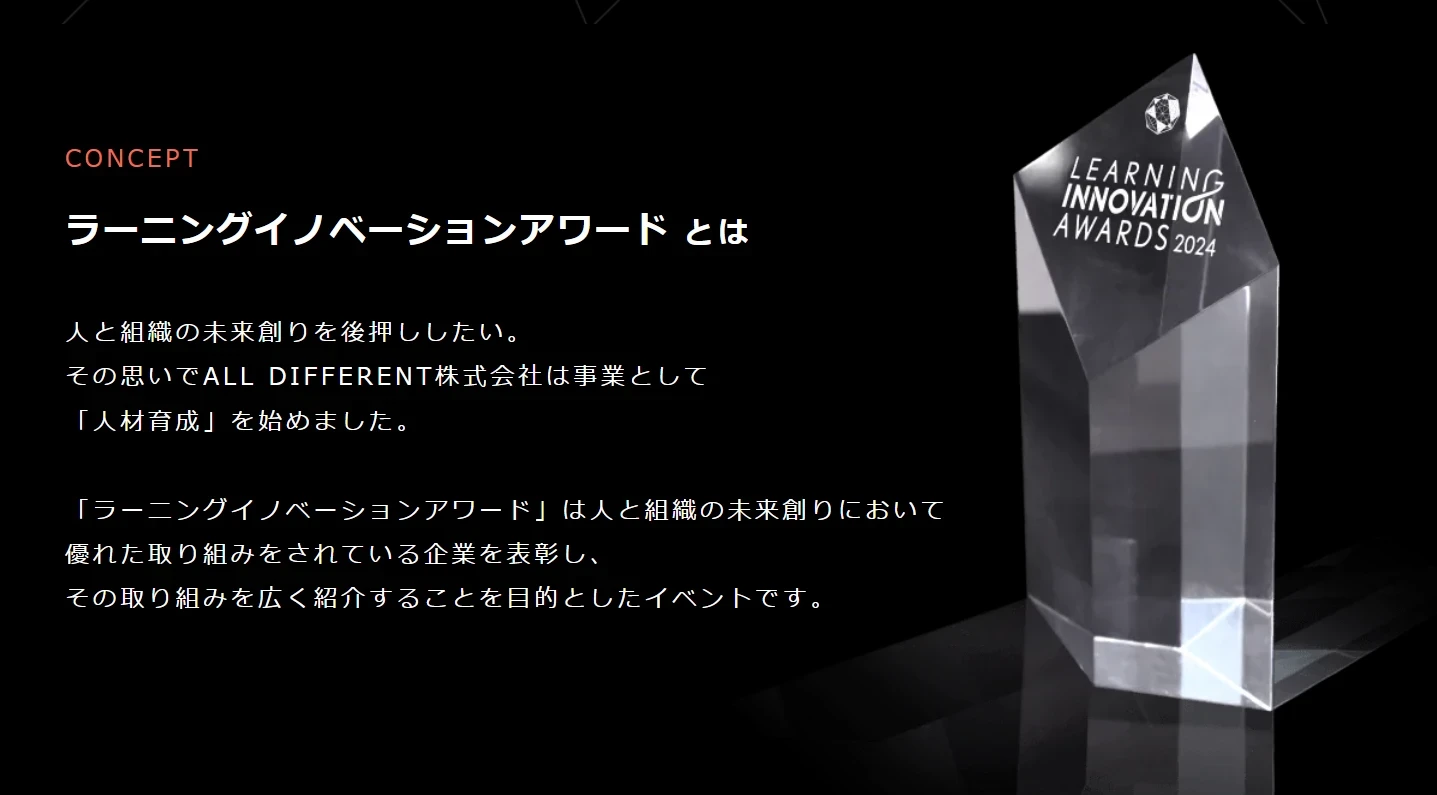 この度、数ある企業の中から「オールディファレント」が主催するアワード「ラーニングイノベーションアワード2024」に弊社が「組織開発部門賞」を受賞することができました。