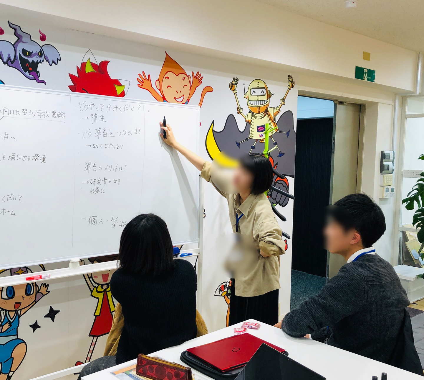 今回の参加メンバーは、日ごろから教職課程を履修したり、日本語教育を研究していたりと、教育に高い関心をもつメンバーでした。2チームに分かれてディスカッションをすると、面白いことにどちらのチームも「小学生くらいの早期に、興味を持ったことから将来の仕事に関心を広げられたらよい」「自分の意思で将来を選択できるように情報をもっと与えたほうがいい」などキャリア教育の領域の議論になっていました。就職活動に取り組む中で、「自分のやりたいこと」と突然向き合わなくてはいけない状況に課題を感じているのかもしれません。