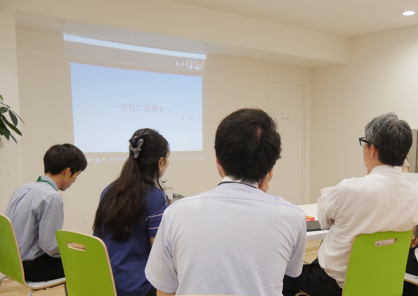 昨年8月の写真。インターン初日の自己紹介をzoomにて。このときは社員は集まって視聴しました。