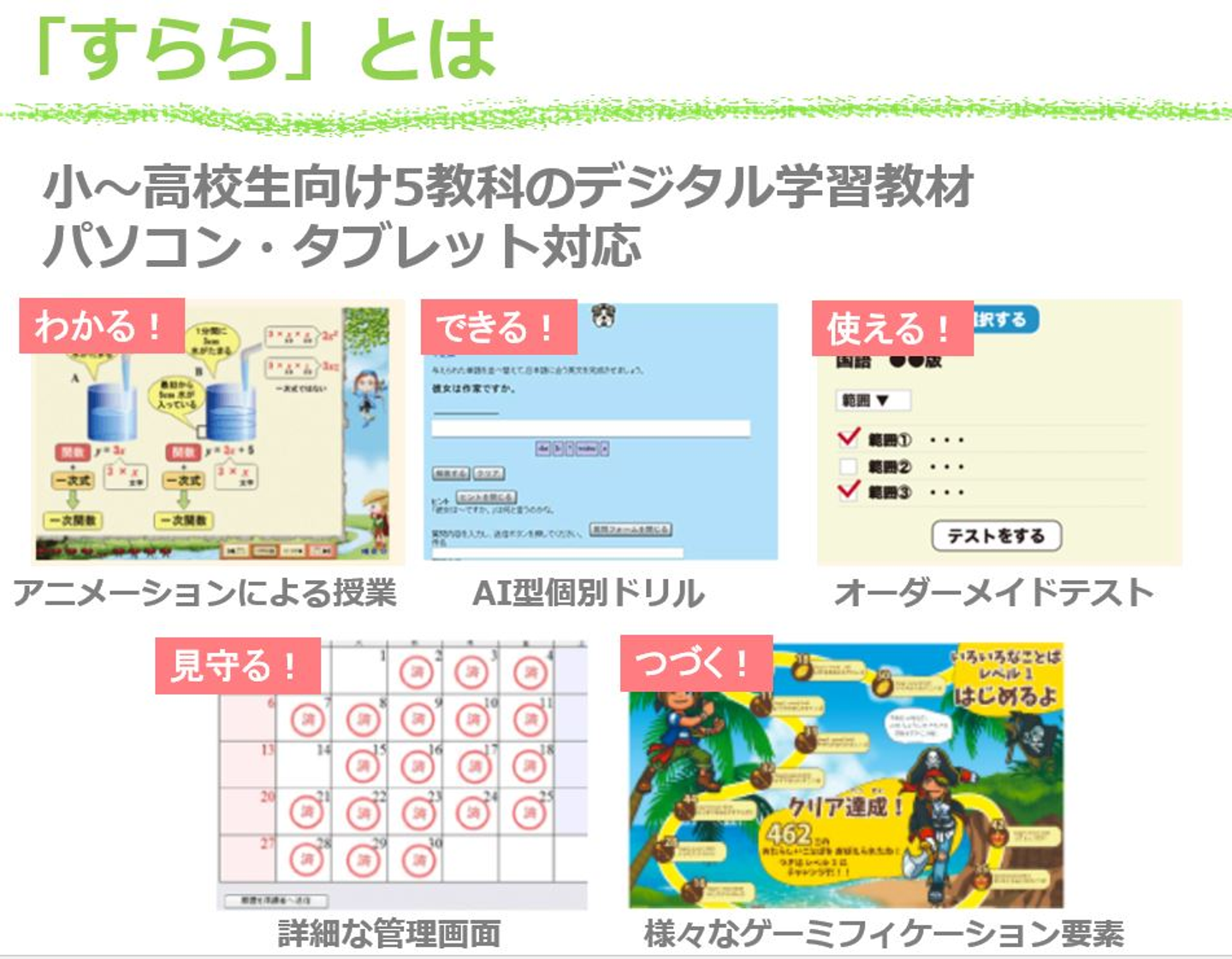 すららネットでは、3月に新型コロナウイルス感染拡大に伴う全国一斉休校が行われてから、全国の学校や学習塾に対しての支援を行ってきました。具体的には、「すらら」IDは約10万名に無償提供、その他にも休校中のICT活用に関する先生向け情報提供セミナーの開催などです。