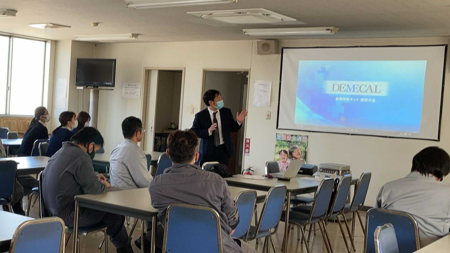 また、別日にはプロジェクトリーダーの吉永から、当社が提供する指先採血キットの使用方法を説明しました。