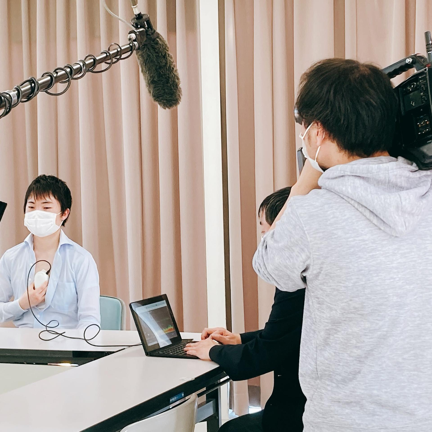 ①3月30日にテレビ熊本「TKU Live News」で放送された「水俣市での遠隔聴診実証事業」についての取材