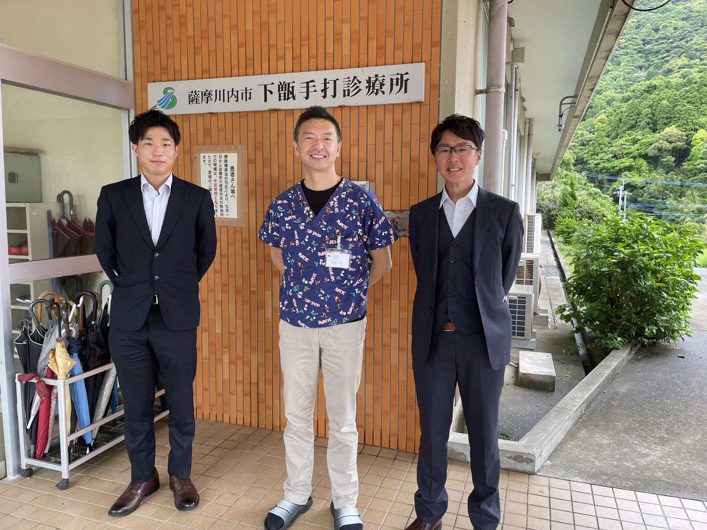 写真左から、髙群(AMI)、齋藤学 所長(下甑手打診療所)、杉山(AMI)