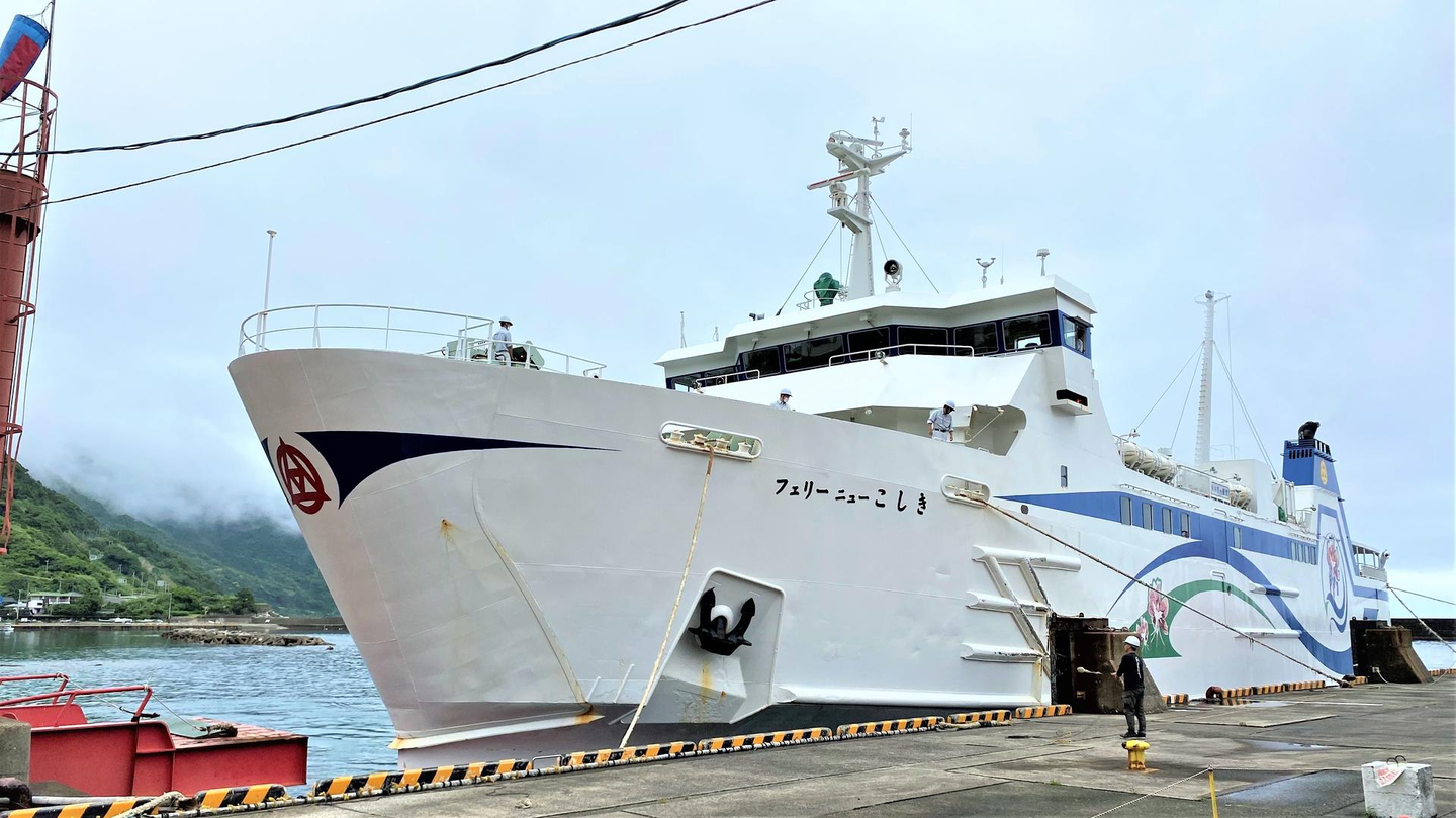 5月某日、事業企画部の杉山と髙群は、鹿児島県の西方に位置する離島、下甑島へ向かうフェリーに乗船していました。目的は、当社が開発する遠隔聴診対応ビデオチャットシステムを用いて下甑島の下甑手打診療所と島内の集落を繋ぎ、「遠隔聴診」の実地検証をすることです。