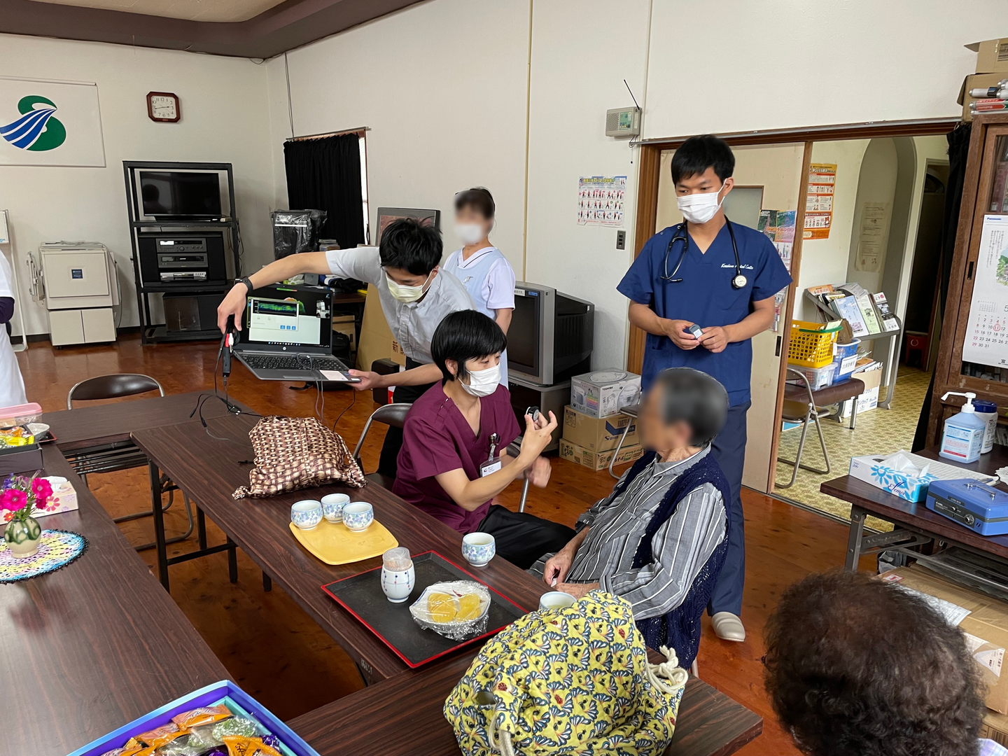 内川内コミュニティセンターで遠隔聴診を実施している様子