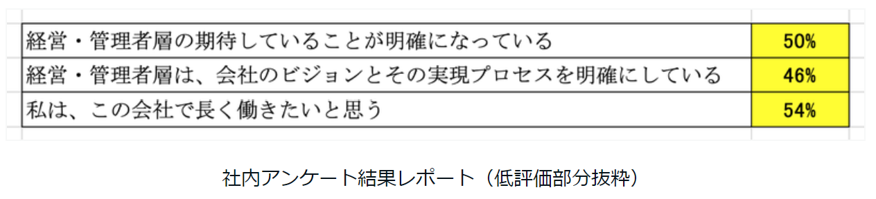 「働きがいのある会社」に認定されて嬉しい一方で、社内アンケート調査の結果レポートを見ると、dotDに足りていない部分、つまりは社内評価の低い部分も見えてきました。