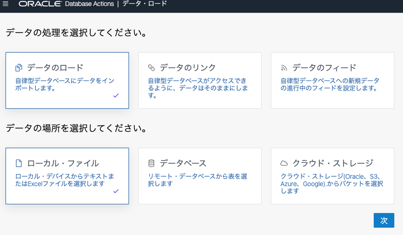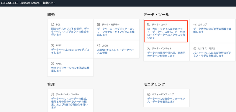 ※Oracle公式ドキュメント等にはデータをロードするという表現が使われていますが、個人的にインポートするという表現の方がしっくりくるので、この記事ではインポートで統一します。