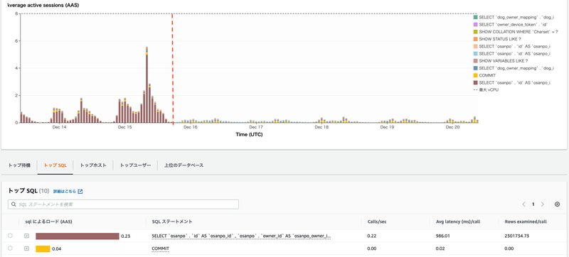 - システム内で利用していないカラムをおさんぽ中の位置情報の更新毎にUPDATEしていた。(Performance Insightsに出てくるSQLとしては、COMMITに全てマージされてしまいます)