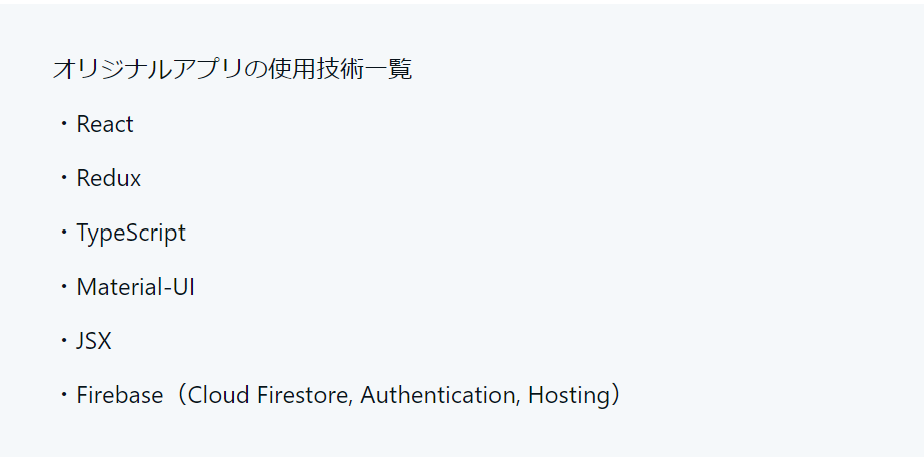 トラハックさんの動画を一通り見てReactとTypeScriptを学んだ後は、オリジナルアプリを作ってフロントエンド開発をバリバリ行いました。